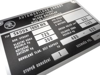 Záleží na konkrétní karoserii, výbavě, roku výroby. Vše je zakódované pod písmeny. Vzhledem k množství možných modifikací, těžko někdo bude mít stejný výrobní štítek jako ty, nehledě k tomu, že se vždy bude lišit znaky VIN. Av Mladé Boleslavi, znak označuje závod Atamtéž, znak označuje továrnu v Kvasinách, znak výrobní závod Vrchlabí, znak X označuje továrnu v polské Poznani.